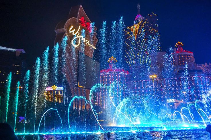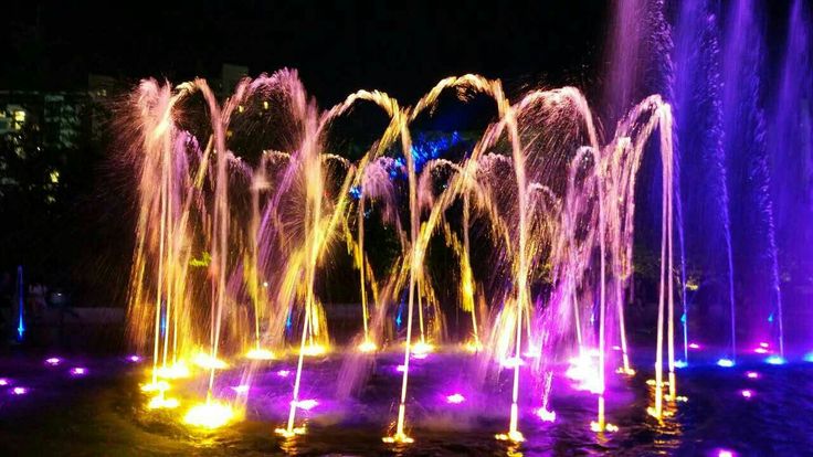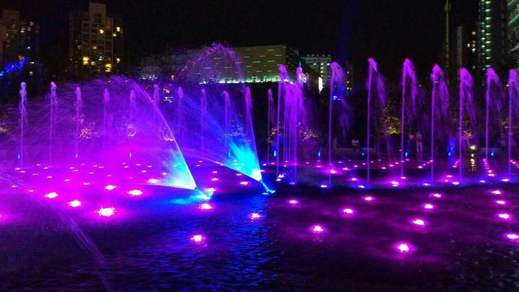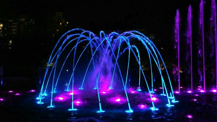 音乐喷泉-舞动的水柱与灯光交织在一起